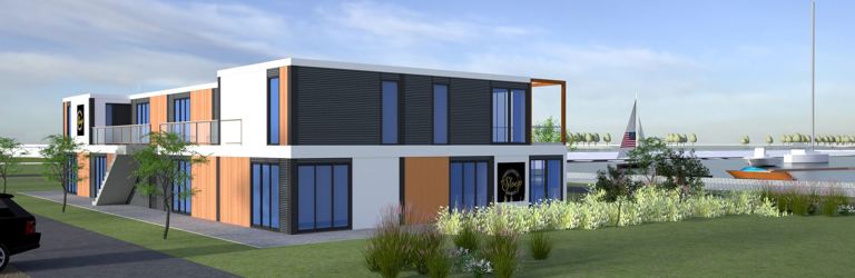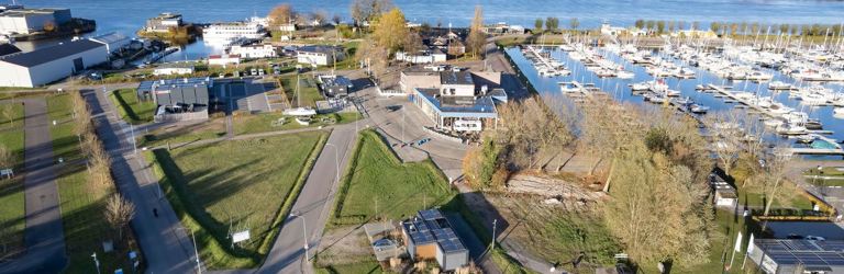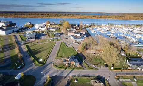Nu nog een kaal terrein, maar straks is de Schakel de spetterende entree van Jachthaven Biesbosch
